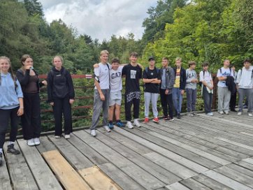 Uczniowie klasy 1a wraz z wychowawczynią -p. A. Hryciuk i p. A. Krywejko, wybrali się 8 września 2025r. w stronę Srebrnej Góry. Z zapałem dzielnych piechurów pokonaliśmy trasę wiodącą od Nowej Rudy przez Dzikowiec, aby wkroczyć na były szlak kolejowy, który doprowadził nas do celu. Wspólny wysiłek, dbałość o innych w grupie i humor pomagały we poznawaniu własnych możliwości oraz potrzeb innych osób. Grupa przeżyła prawdziwe wyzwanie turysty, czyli przejście przez ogromne rozlewisko kałuż i błota! Oczywiście klasa odniosła sukces i prawie bez szwanku wyszła z błotnego labiryntu. Czy to doświadczenie przynosi refleksję...Tak! Jesteśmy podróżnikami w poszukiwaniu mądrości, a na naszej drodze nie jeden raz będziemy musieli przekraczać własne możliwości oraz zdobywać nowe doświadczenia życiowe... Czekamy na kolejne wspólne wyjście poza mury!  |