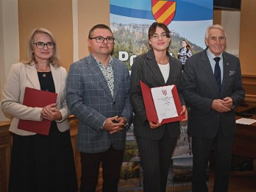 30 września w Kłodzku, w wyjątkowej atmosferze, tuż przed rozpoczęciem sesji Rady Powiatu Kłodzkiego, miała miejsce ceremonia wręczenia stypendiów w ramach Uczniowskiego Programu Stypendialnego Powiatu Kłodzkiego „Discipulus Exemplorum” za rok szkolny 2024/2025. Dyplomy stypendialne wręczyli: Zbigniew Łopusiewicz – Przewodniczący Rady Powiatu Kłodzkiego, Piotr Marchewka – Wicestarosta Powiatu Kłodzkiego. Z pośród 14 uczniów pochodzących ze szkół prowadzonych przez Powiat Kłodzki z Liceum Ogólnokształcące im. Henryka Sienkiewicza w Nowej Rudzie stypendia otrzymały: Aleksandra Kossak Anna Bokuniewicz Lena Jakubowska Program stypendialny Powiatu Kłodzkiego skierowany jest do uczniów i absolwentów szkół prowadzonych przez Powiat Kłodzki, którzy wyróżniają się w nauce, osiągają znaczące sukcesy w olimpiadach i konkursach przedmiotowych, rozwijają swoje pasje artystyczne lub sportowe, a także angażują się w życie społeczne i działalność na rzecz innych. Przyznawane stypendia są wyrazem uznania dla ich pracowitości, talentu i wyjątkowych osiągnięć, a także zachętą do dalszego rozwoju. Serdecznie gratulujemy naszym uczennicom i liczymy, że za rok liczba stypendystów w LO im. Henryka Sienkiewicza w Nowej Rudzie będzie jeszcze większa ! |